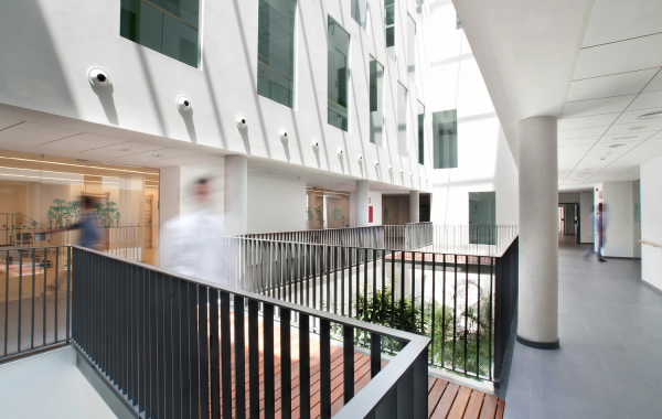 El resultado es un edificio que combina la escala de una infraestructura sanitaria compleja con una arquitectura capaz de integrarse en el paisaje urbano y territorial de Barcelona.
